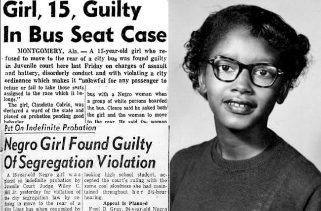 This is Claudette Colvin. A 15-year-old girl who refused to give up her seat to a white person during the Jim Crow segregation era.
