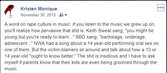 I’ve often said that the music many of us, from Gen X through the current Gen Z, grew up listening to was grooming us. In the past, I’ve made that observation in relation to pedophilia and sexual abuse against Black girls in the Black community.