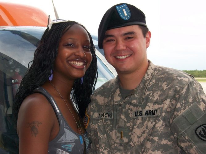 Oh, it was great! The military has a lot of interracial relationships, so we did not have any problems.