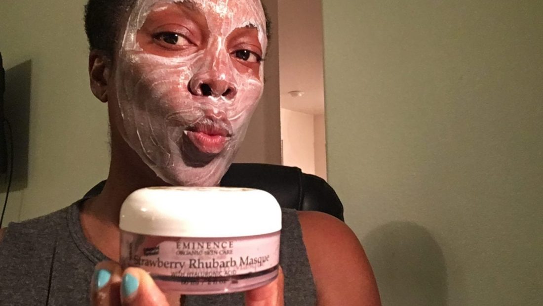 I absolutely want to eat the Strawberry Rhubarb Mask from Eminence–its smells soooo good. But that’s not why I use it. Well; at least not the one reason. This gentle hydrating and exfoliating mask shrinks the pores along my cheekbones and gives my skin a plump, youthful glow. I keep it one five or ten…