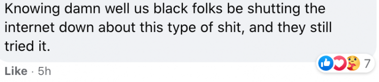 The commenter above isn’t wrong. Black outrage is highly profitable. All corporations have to do is trigger a few black people and the Internet will be aflame with dragging from now until the next pandemic. Free press! But the thing is, corporations know that the collective will get angry, but that anger means nothing. Since we have no proper patriarchy of our own, and we rely on everyone else for everything else, they can do what they want with little recourse.