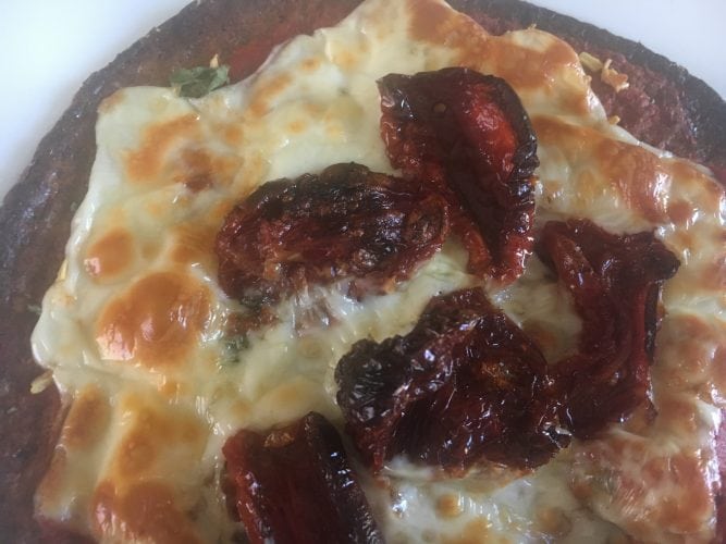 The crust was a little over browned because I forgot I was cooking it for a while doing homemaker stuff. I love that it only has 5 grams of carbs, so no fear of blood sugar overload. The 9 grams of protein is also a plus, because it will keep you full longer and help with muscle recovery if you’re working out.