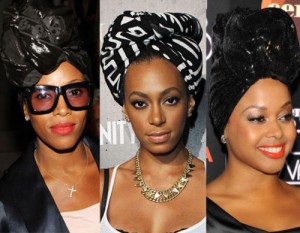 Now, some of you may baulk at the idea of a head wrap because it conjures up images of Aunt Jemima, Mammy and SOUL SISTA but let me tell you this item is a classic from the 1920s – 1960s and it will get you much attention from the Rainbeaux. YES! I was being lambasted by my black peers who thought my turbans and head wraps made me look to ethnic–read exotic– however when I went out a few weeks ago with some friends to a high-end wine/food bar here in Houston known for its jetsetting crowd I could not beat the rainbeaux off of me.