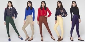 To really simplify the matter try Gap’s, “minna sodawash T,” in a raspberry or neon flamingo, with a pair of jeans and mid-low heels, to look causal and sexy. Also, brightly colored pants can easily take an outfit to another level. Try American Apparels riding pants also in a raspberry, or imperial purple.
