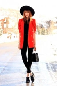To really simplify the matter try Gap’s, “minna sodawash T,” in a raspberry or neon flamingo, with a pair of jeans and mid-low heels, to look causal and sexy. Also, brightly colored pants can easily take an outfit to another level. Try American Apparels riding pants also in a raspberry, or imperial purple.