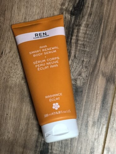 Once a week at night I like to apply Ren AHA Smart Renewal Body Serum. It contains lactic acid and sugars to gently exfoliate, and shea butter oil to deeply moisturize. I love it because it contains no harmful ingredients and stays in line with my “clean” beauty standards. The downside? At $42 a tube, and a bit on the watery side, it can be easy to quickly run through it.
