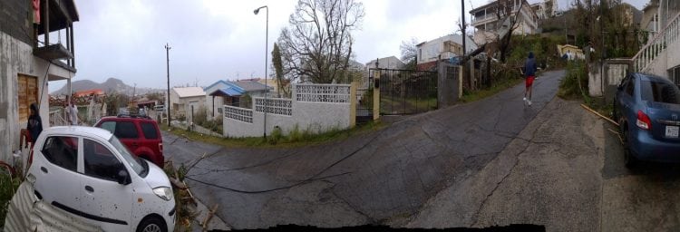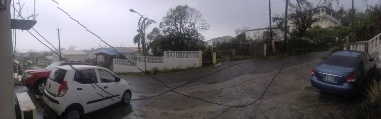 Our neighbors to the far left (the Yu family) had lost their roof. The SXM cable pole across the street is snapped like a match, and the home slightly up the hill from us and across the street was gutted and de-roofed.