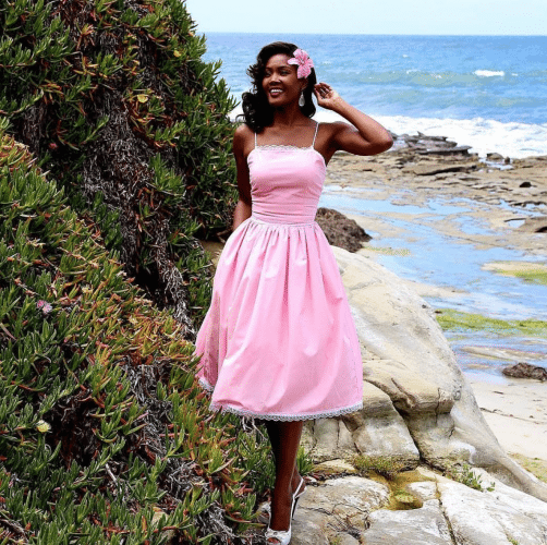 I recently started thinking about what psychology behind a black woman wearing this style of clothing. It’s pretty indisputable that mid-century fashion was the best of the 20th Century, and the women portrayed in the pinups tacked on garages and gas stations all over the world were seen as the most feminine and glamorous of all. It brings back a classic nostalgia of Americana–big red Cadillacs and Leave it to Beaver. The pinup girl look on a black woman, juxtaposed beside a stereotype that thoroughly dehumanizes and de-feminizes us is a surprise. It can cause an initial cognitive dissonance, and upset in the lazy way of thinking. All of a sudden you’re approachable. You seem friendly and fun. You make people want to say hello. Fashion, literally changing the world.
