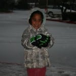 But the good news is, the kids, for the first time in their lives, saw actual snow coming from the sky last night: