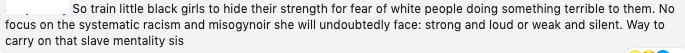 I didn’t go through all the thousands of comments, but the small number of people defending this nonsense was black women. Another reaction I saw was a handful of black women tagging their significant other saying “this is going to be our kid” as if it is something aspirational, or other people tagging their black female friends saying “this is you when you argue” like it’s something to be proud of. Why are people so desperate to cling to and identify with the basest of behaviors?