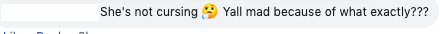 After reading this comment, I’m mad because there are black women like the woman who posted this who see nothing wrong with the video. Dropping an F-bomb would be the least of it, really. Again, yikes.