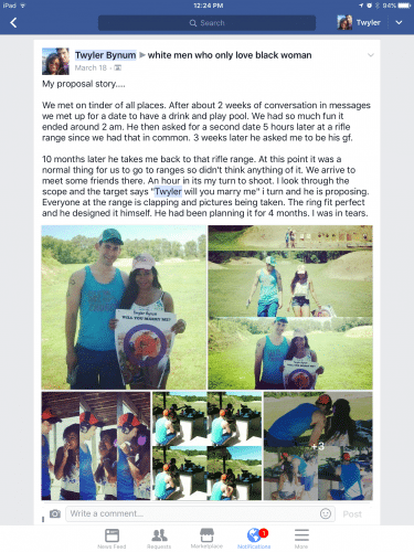 Twyler and Travis surprisingly met on Tinder, a dating site infamous for facilitating easy “hook ups.” But hey; diamonds can be found virtually anywhere. They shared their story on an IR Facebook group.