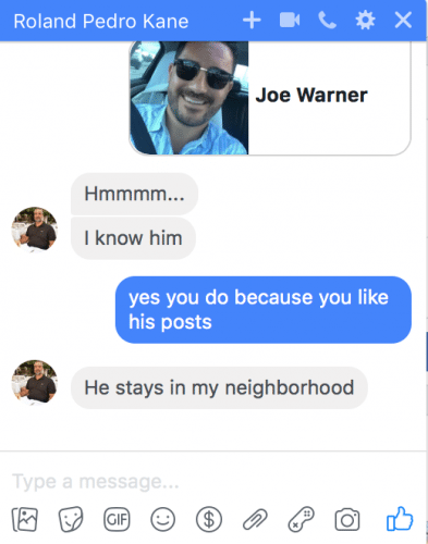 Yes; he noticed that I informed the “REAL Pedro” he was being impersonated, because this man has completely hacked his account. We have warned “Real Pedro” but so far, we haven’t heard confirmation that he’s taking any action. Although he’d better.