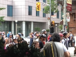 Before my next film, I grabbed a quick bite to eat in the TIFF Lightbox restaurant and was immediately treated to a skateboard protest. Thousands of skateboarders suddenly descended on King Street and skated through the heart of the festival. No one in the restaurant knew what their demands were though.