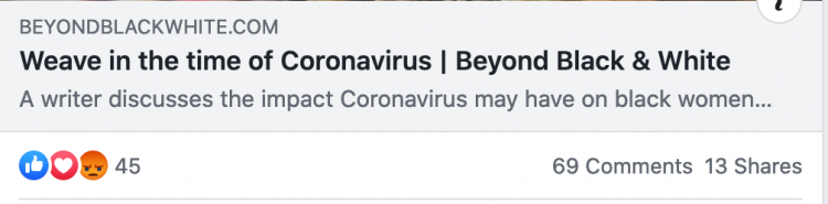 But then I write about something that will likely have an even greater impact on black women (childcare issues in the wake of school closures) and the post got one piddly little like. Why? Mind you, it’s not the fact that people are not liking the posts on social media. Likes mean nothing. I’m just using the feedback on the posts as a metric to quantify the engagement. Are people more concerned about what a blogger thinks about their hair, than how they will house, feed, educate and entertain their children for what could be the rest of the school year, and beyond? And even if you’re childless like me, there was still some content for those without kids included.